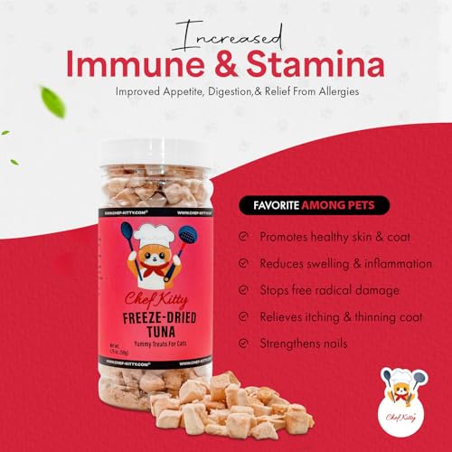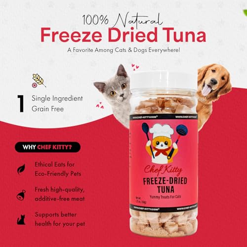 Chef Kitty Freeze Dried Tuna Treats for Cats and Dogs 1.75 oz + Training Waffle Treats – Healthy, Tasty, Dry Food for Indoor Cats, Kittens, Dogs – Inspected & Tested in USA