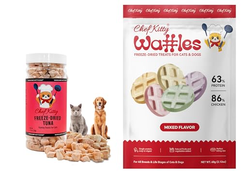 Specification: Chef Kitty Freeze Dried Tuna Treats for Cats and Dogs 1.75 oz + Training Waffle Treats – Healthy, Tasty, Dry Food for Indoor Cats, Kittens, Dogs – Inspected & Tested in USA