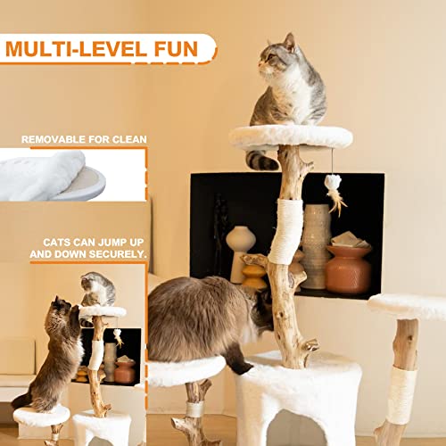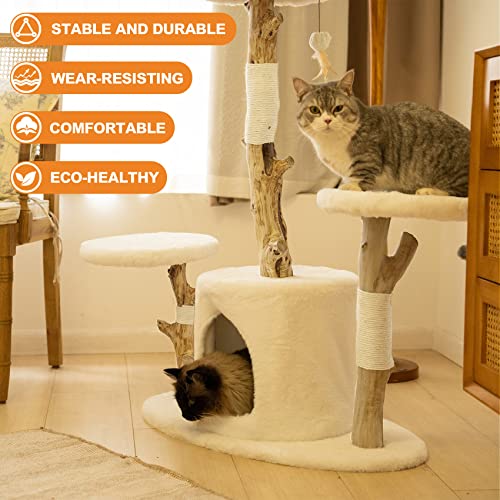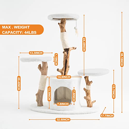 Petest Cat Tree 38 Inch Real Branch Cat Tower Wood Cat Condo for Indoor Cats Furniture Activity Center with Scratch Post for Kitten