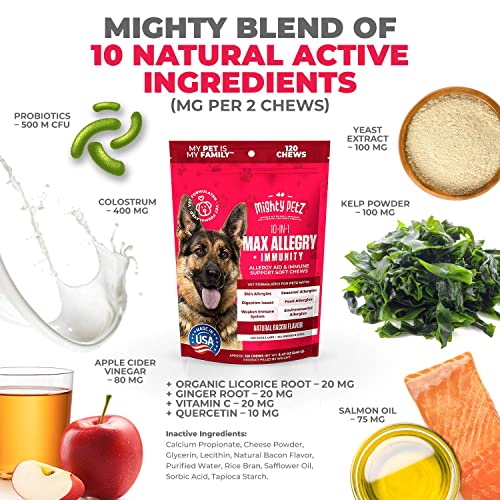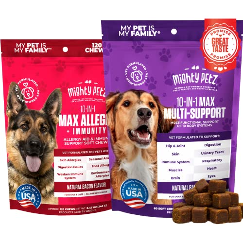 Mighty Petz MAX Dog Allergy Relief – Itch Free Skin – Immune Supplement with Omega 3 Fish Oil + Probiotics + Colostrum. Skin & Coat Health + Digestion. 120 Chews for Pets with Seasonal Allergies + Mighty Petz MAX Dog Multivitamin + Probiotics + Glucosamine Chondroitin + Fish Oil + 15 More! Adult & Senior Dog Supplement Vitamins Chews to Support Hip & Joint, Skin + Coat, Digestion & Immunity