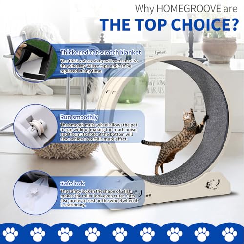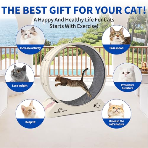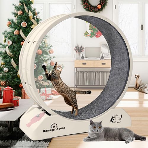 homegroove Cat Exercise Wheel, Cat Wheels for Indoor Cats, 31.5Inch Cat Treadmill Wheel Exerciser with Carpeted Runway, Cat Running Wheel for Kitty’s Longer Life, Plastic Cat Wheel for Fitness Weight