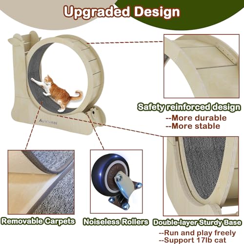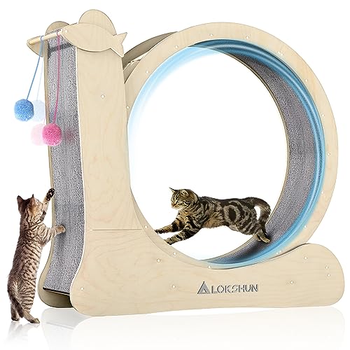 Specification: Lokshun Cat Wheel,3-in-1 Cat Exercise Wheel with Built-in Cat Scratcher,Cat Wheel Exerciser for Indoor Cats, Natural Wood Cat Treadmill with Brake Stop,Weight-Loss Cat Running Wheel for Catâs Health