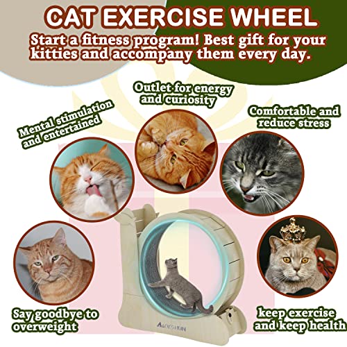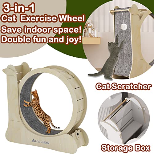 Lokshun Cat Wheel,3-in-1 Cat Exercise Wheel with Built-in Cat Scratcher,Cat Wheel Exerciser for Indoor Cats, Natural Wood Cat Treadmill with Brake Stop,Weight-Loss Cat Running Wheel for Catâs Health