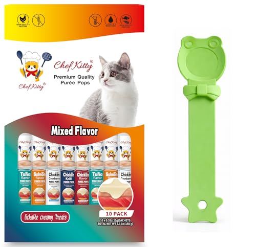 Be the first to review “Purée Pops + Green Feeding Spoon, Grain-Free, Lickable, Squeezable Creamy Cat Treat/Topper, 10 Tubes, Chicken and Seafood Mix Variety”