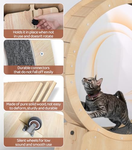 Specification: PUPIHOM 39.4″ Wooden Cat Running Wheel – Low Noise Exercise Wheel for Large Indoor Cats