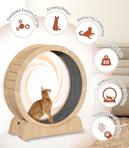 PUPIHOM 39.4″ Wooden Cat Running Wheel – Low Noise Exercise Wheel for Large Indoor Cats